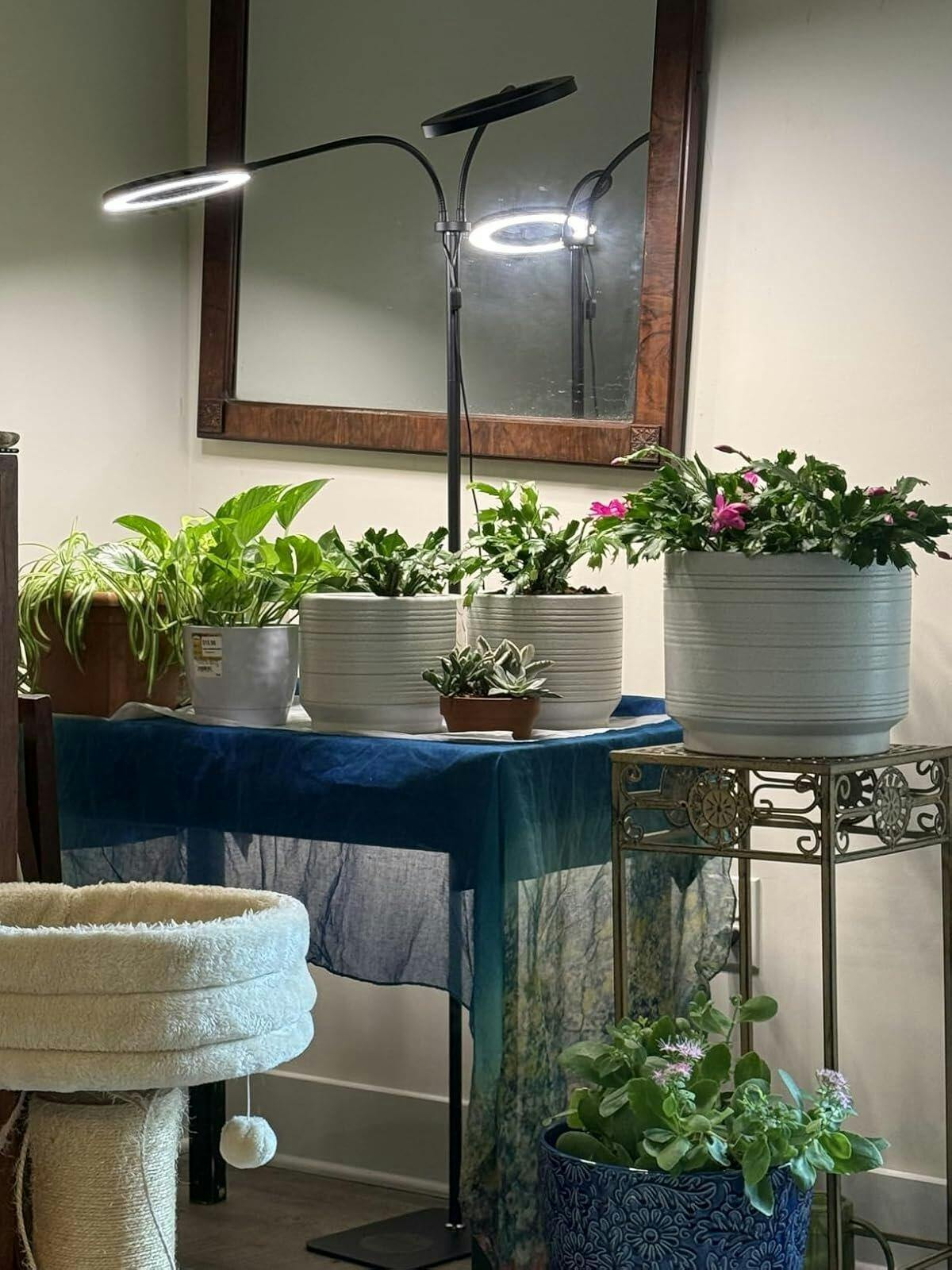I have two of these, one in black and one in white, in different areas. Probably my favorite lights. Stable base (not a tripod!). These lamps supplement the light that my many, many plants love. Noticeable difference with less leaf damage, more healthy growth, perky petioles, and fluffy, full leaves.