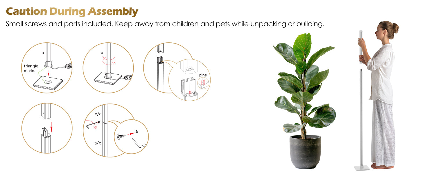 No tools needed! Assemble in minutes and adjust height from 16'' to 60'' for small succulents or tall tomato vines.