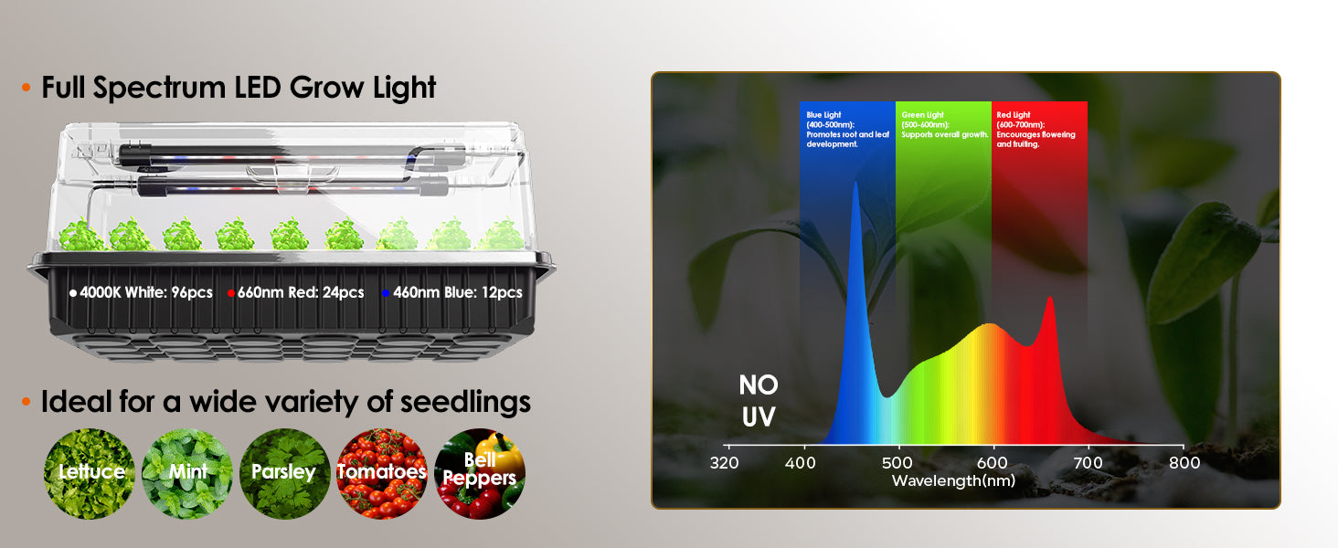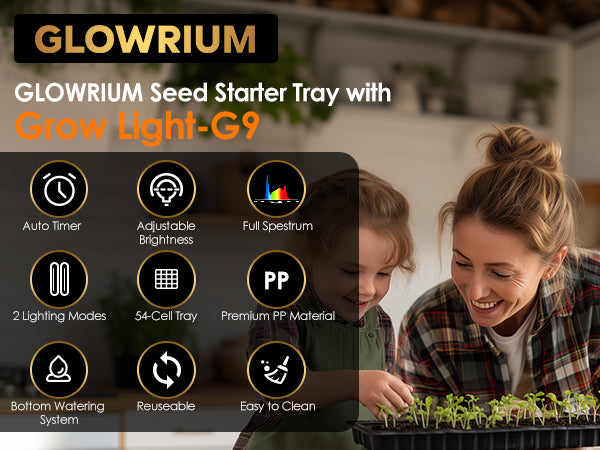 GLOWRIUM Full-Spectrum Seed Starter Kit with Adjustable LED Grow Lights & Humidity Dome | 30W High-Output Seedling Tray for Indoor Germination-G9