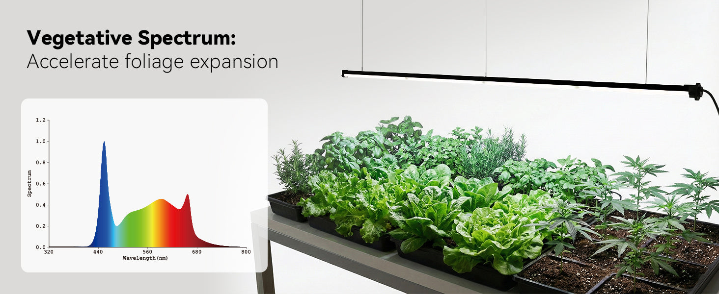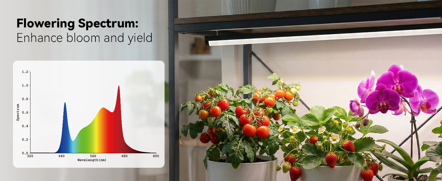 A: Our full-spectrum light mimics natural sunlight, avoiding the harsh "purple" glare of traditional lights. It provides a natural, warm glow suitable for living spaces while delivering the specific blue peaks for growth and red peaks for flowering that plants crave.
