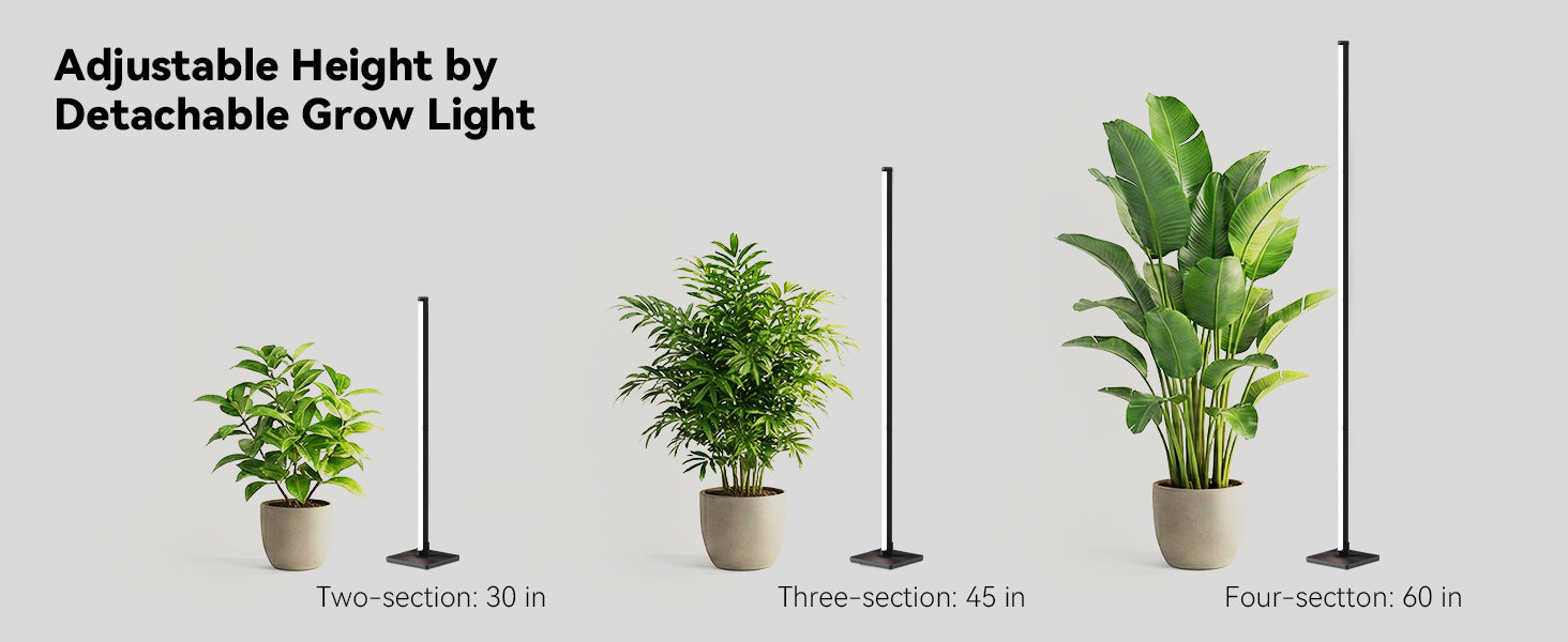 Snap 2, 3, or 4 sections for 30", 45", or 60" heights. Supports Standing, Hanging, or Bottom-Lighting to fit any indoor setup.