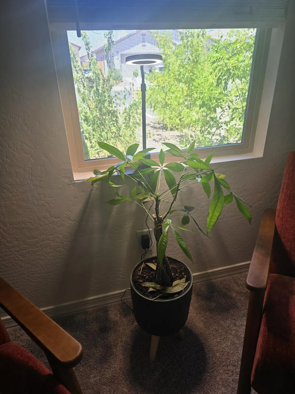No clamps, no shelves, no fussing. Adjusts from 15.7" to 22.8" and stands solid on its own — perfect for floor plants, tight corners, or anywhere a clip-on just doesn't cut it.