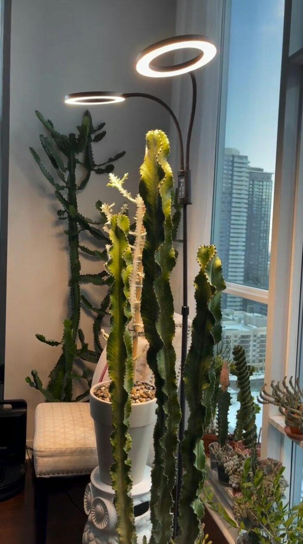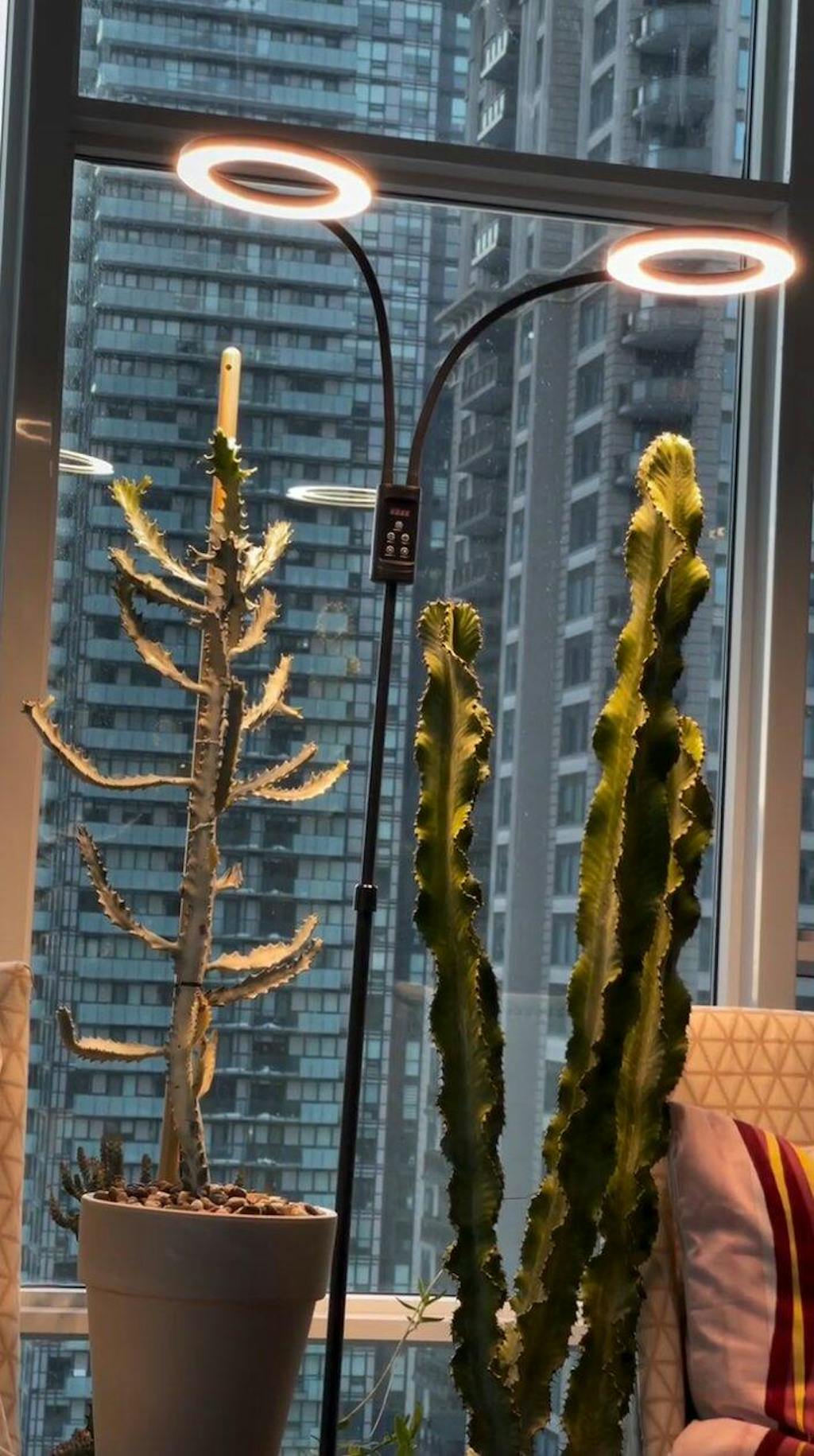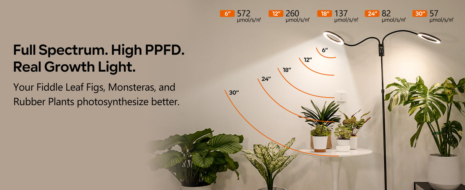 Delivers professional-grade 572 µmol/m²/s at 6 inches for deep light penetration. Two 360° flexible gooseneck heads cover your tall plants from top to bottom—prevents leggy, stretched growth.