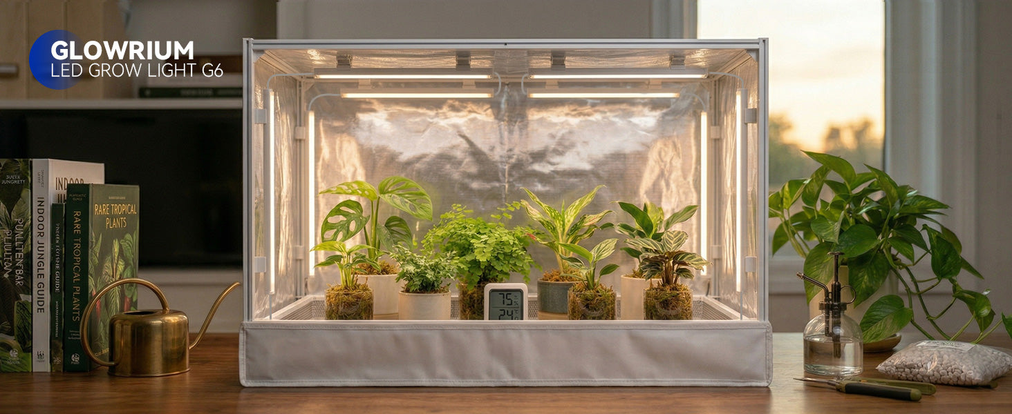 Bar-shaped and low-profile, the G6 slides right into IKEA cabinets, wire racks, tiered plant stands, or any shelf setup you've got going. Link multiple bars together for full coverage, and aim each one exactly where you need it. Clean look, zero wasted light.