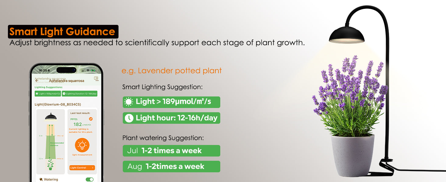 Forget manual switches — just set it once in the app. With dual-phase custom scheduling and Sun-Sync mode, the lamp automatically mimics natural daylight patterns, ensuring plants thrive even when you’re away. Perfect for frequent travelers or forgetful plant parents — your plants never miss a sunrise.