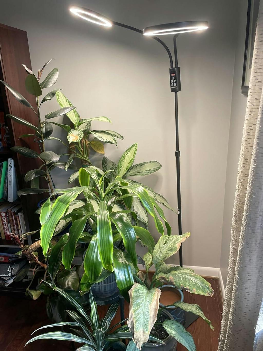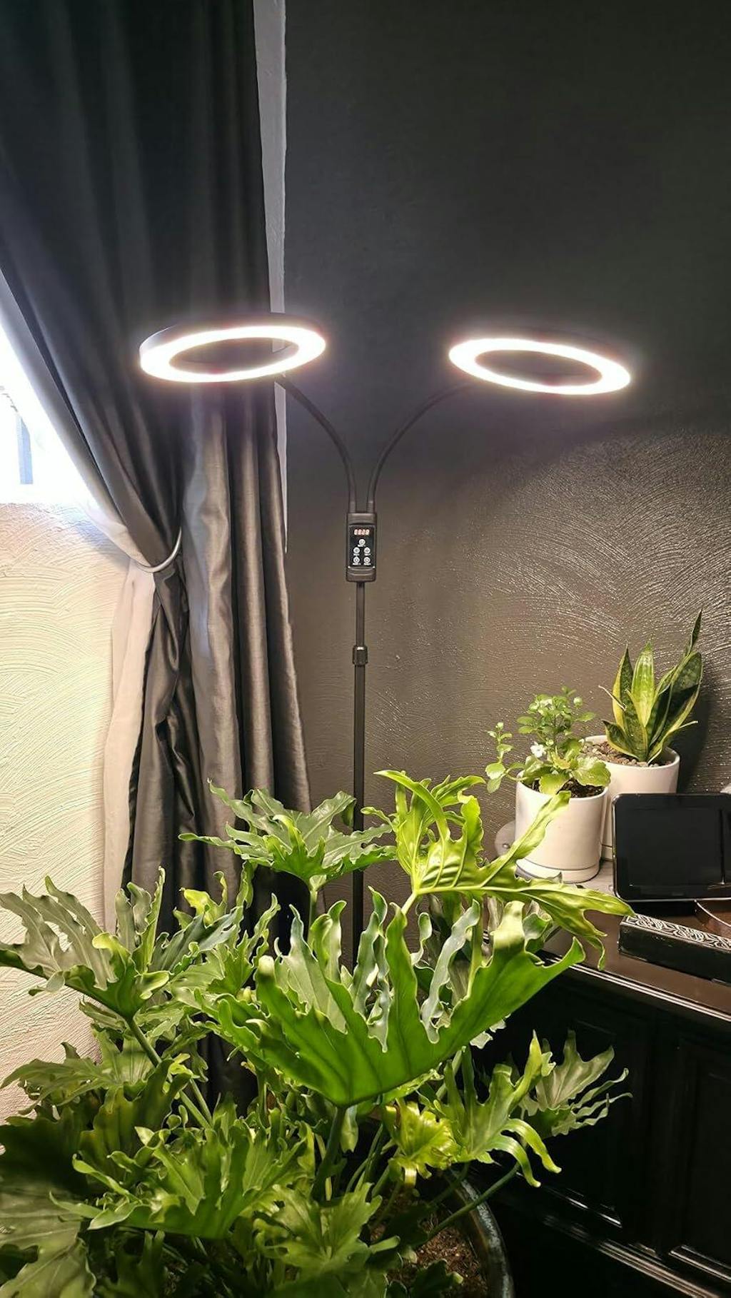 indoor plants are a fussy bunch to grow and keep healthy. Sometimes no matter that you do, the plants just don't seem healthy enough. I especially have a problem during the winter months because my windows that face south are too small and dark due to the patio cover. So, the only solution is the order grow light like this one. Having 2 heads is Definity better than one in most cases. At least in this case. I am able to cover more plants in a given area than ever before. Now to be transparent, I have just received this light and am trying it on a split leaf, which I have problems with every winter, and a snake plant, and a couple of other unnamed plants, please see the photos. So far everything is going very well and the plants like the extra light, but I am going to extend this review through the winter and give you an update. I expect the plants to thrive this winter since they are doing so well at this time.
